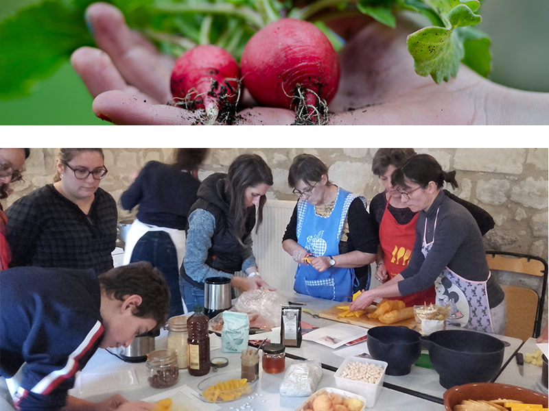 Partez à la rencontre des producteurs de votre territoire (visite de ferme), découvrez les richesses des saveurs locales (ateliers cuisine, dégustation artisanale), composez vos menus et apprenez à vous repérer sur les étiquettes (atelier avec une diététicienne), échangez vos astuces avec les autres familles (jardin, zéro déchets, anti-gaspi).